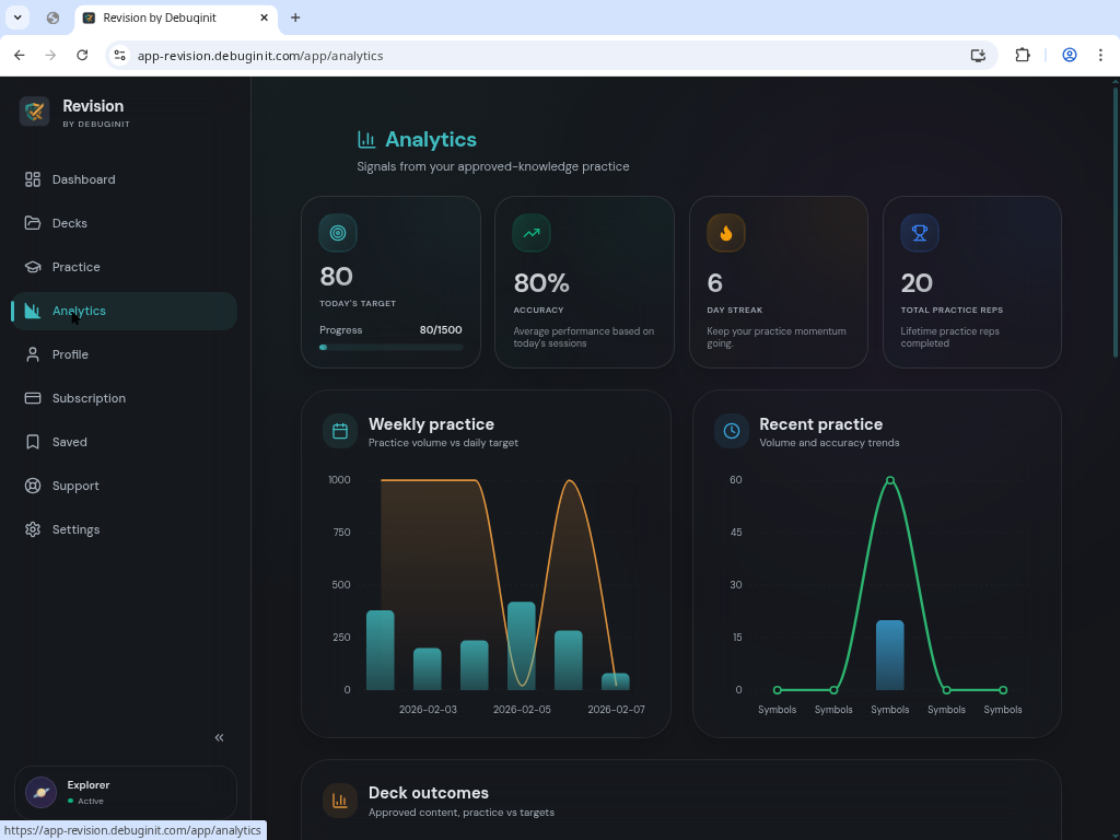 Explore highlights from Debuginit products, including Revision built as intelligent internal tools for retention, execution, and measurable progress.